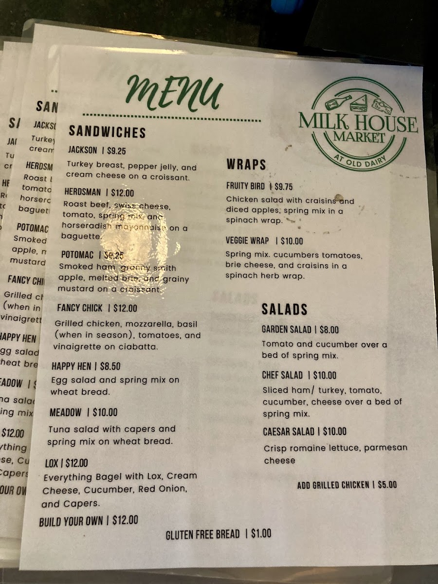Welcome to Milk House Market at Old Dairy, a charming eatery nestled in the stunning Blue Ridge Mountains at 46 Old Dairy Rd, Warm Springs, VA. This delightful cafe offers a diverse menu that appeals to various palates. Start your meal with fresh salads, such as the Garden Salad or the hearty Chef Salad, each crafted with vibrant ingredients.